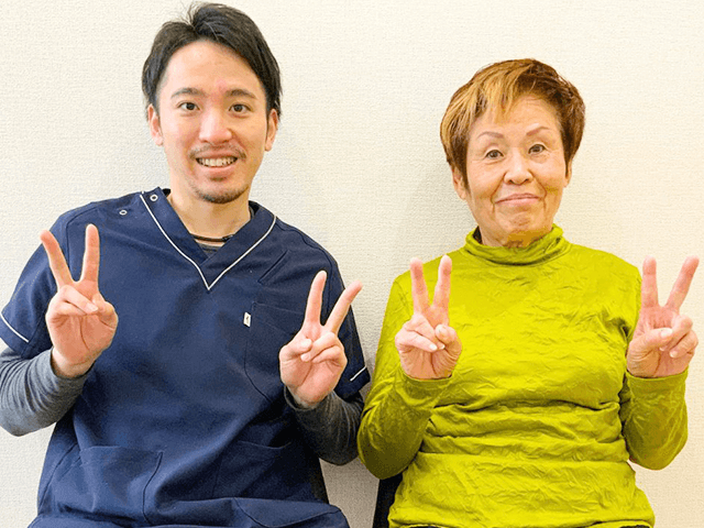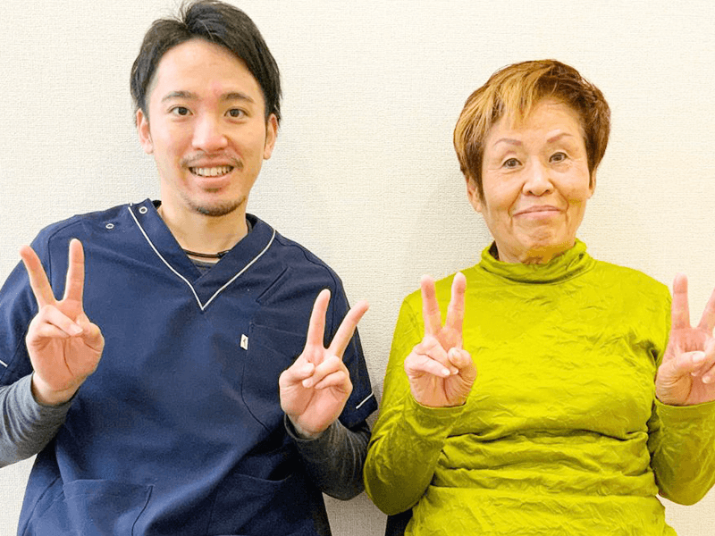 | 本人のコメント | あんなに歩くのもつらかったのが、今では主人と一緒に買い物や旅行に行けるようになりました。前のように腰が曲がらず歩けるのが本当に嬉しいです。家族からも「姿勢が良くなったね」と言われるようになりました。 |
